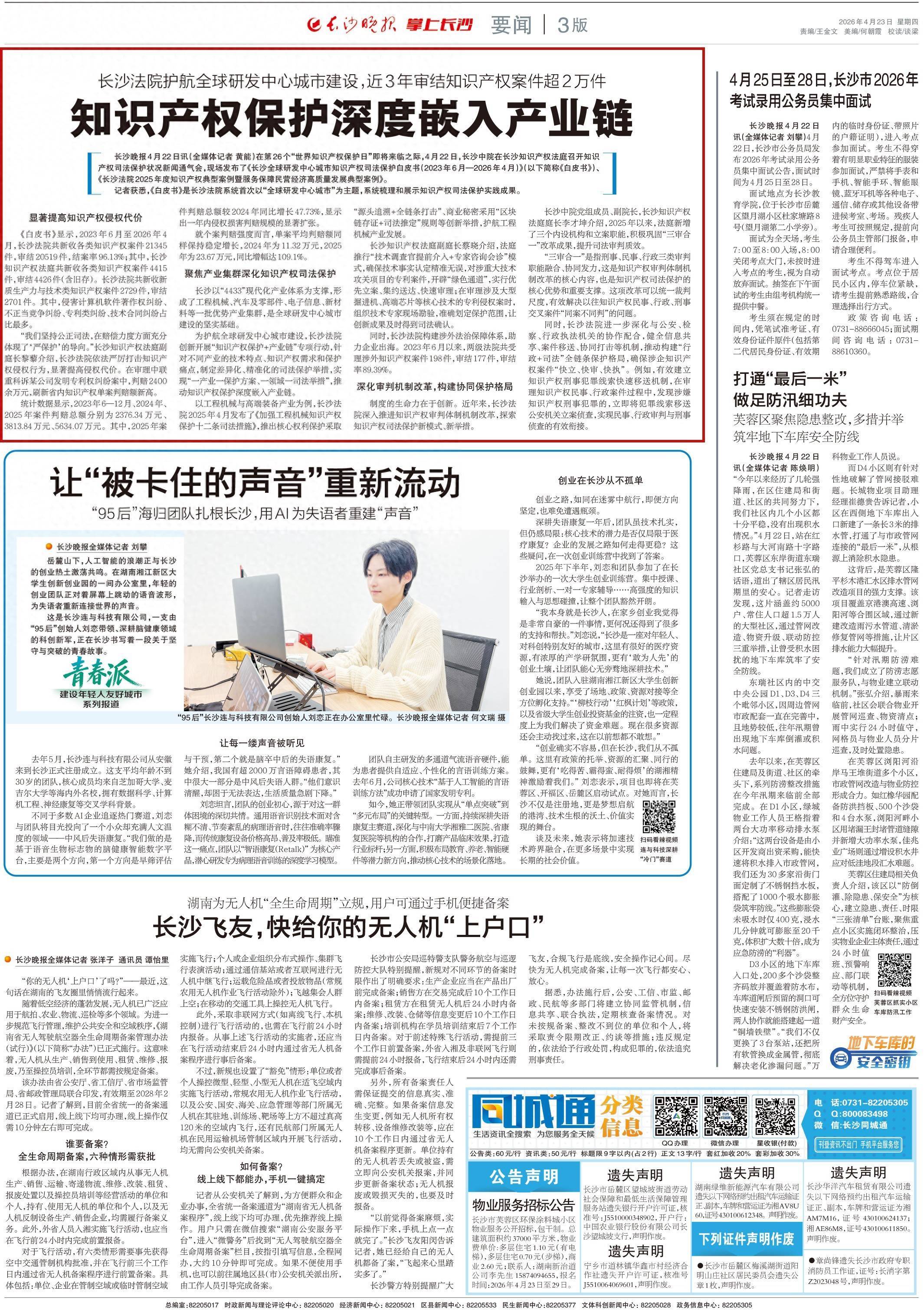 长沙晚报4月22日讯(全媒体记者 黄能)在第26个“世界知识产权日”即将来临之际,4月22日,长沙中院在长沙知识产权法庭召开知识产权司法保护状况新闻通气会,现场发布了《长沙全球研发中心城市知识产权司法保护白皮书(2023年6月—2026年4月)》(以下简称《白皮书》)、《长沙法院2025年度知识产权典型案例暨服务保障民营经济高质量发展典型案例》。